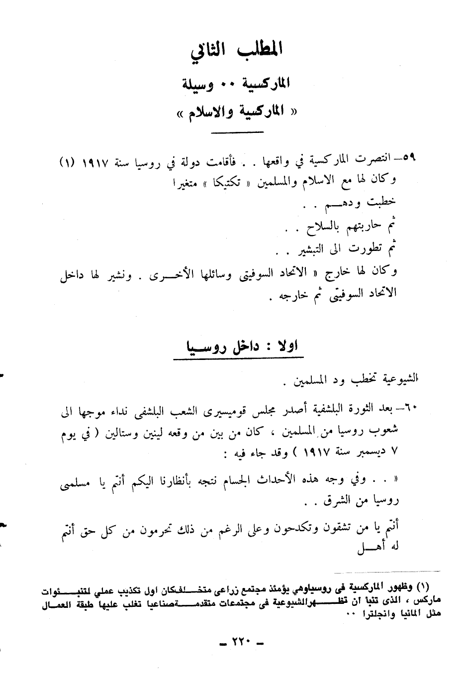 60ـ بعد الثورة البلشفية أصدر مجلس قوميسيري الشعب البلشفي نداء مواجها إلى الشعوب الروسية من المسلمين كان من بين من واقعه لينين وستالين (في يوم 7 ديسمبر سنة 1917) وقد جاء فيه ((.. وفي وجه هذه الأحداث الجسام نتجه بأنظارنا إليكم أنتم يا مسلمي روسيا من الشرق..