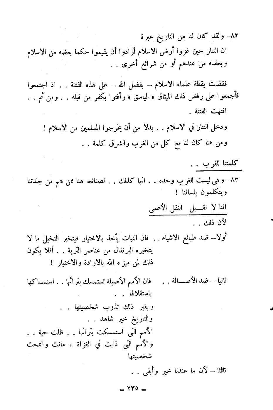 ثانيا ـ ضد الأصالة.. فإن الأمم الأصيلة تستمسك بتراثها.. استمساكها باستقلالها..