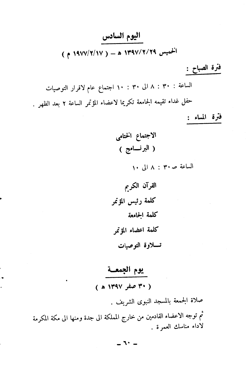 الخميس 29/2/1397هـ ـ (17/2/1977م)