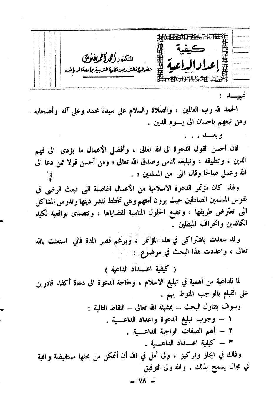 كيفية إعداد الداعية للدكتور أحمد أحمد غلوش