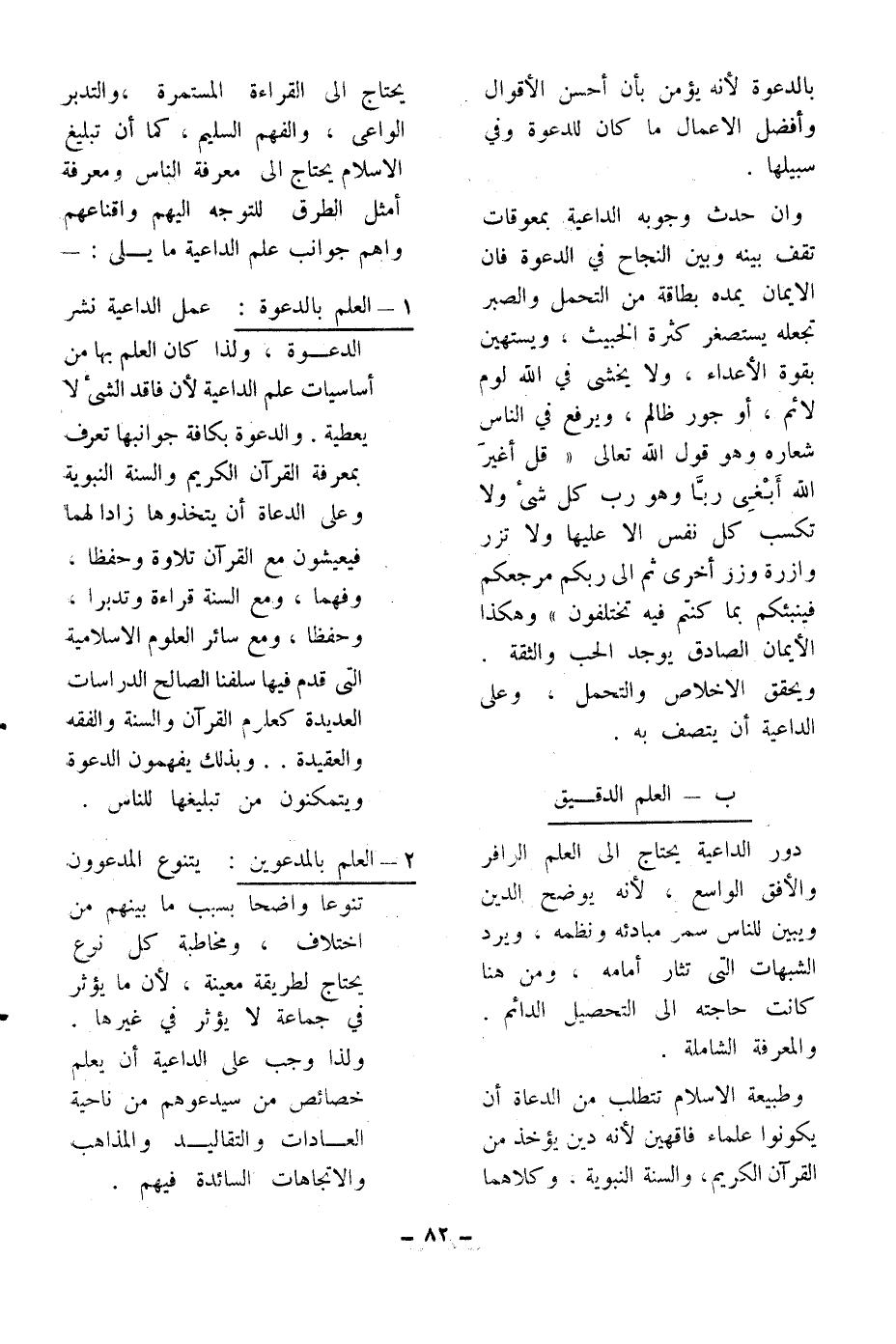 دور الداعية يحتاج إلى العلم الوافر والأفق الواسع، لأنه يوضح الدين ويبين للناس سمو مبادئه ونظمه، ويرد الشبهات التي تثار أمامه، ومن هنا كانت حاجته إلى التحصيل الدائم. والمعرفة الشاملة.