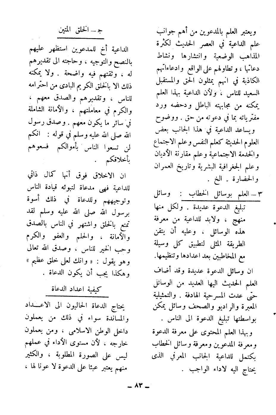 3ـ العلم بوسائل الخطاب: وسائل تبليغ الدعوة عديدة. ولكل منها منهج، ولا بد للداعية من معرفة هذه الوسائل، وعليه أن يتقن الطريقة المثلى لتطبيق كل وسيلة مع المخاطبين بعد إعدادها وتنظيمها.