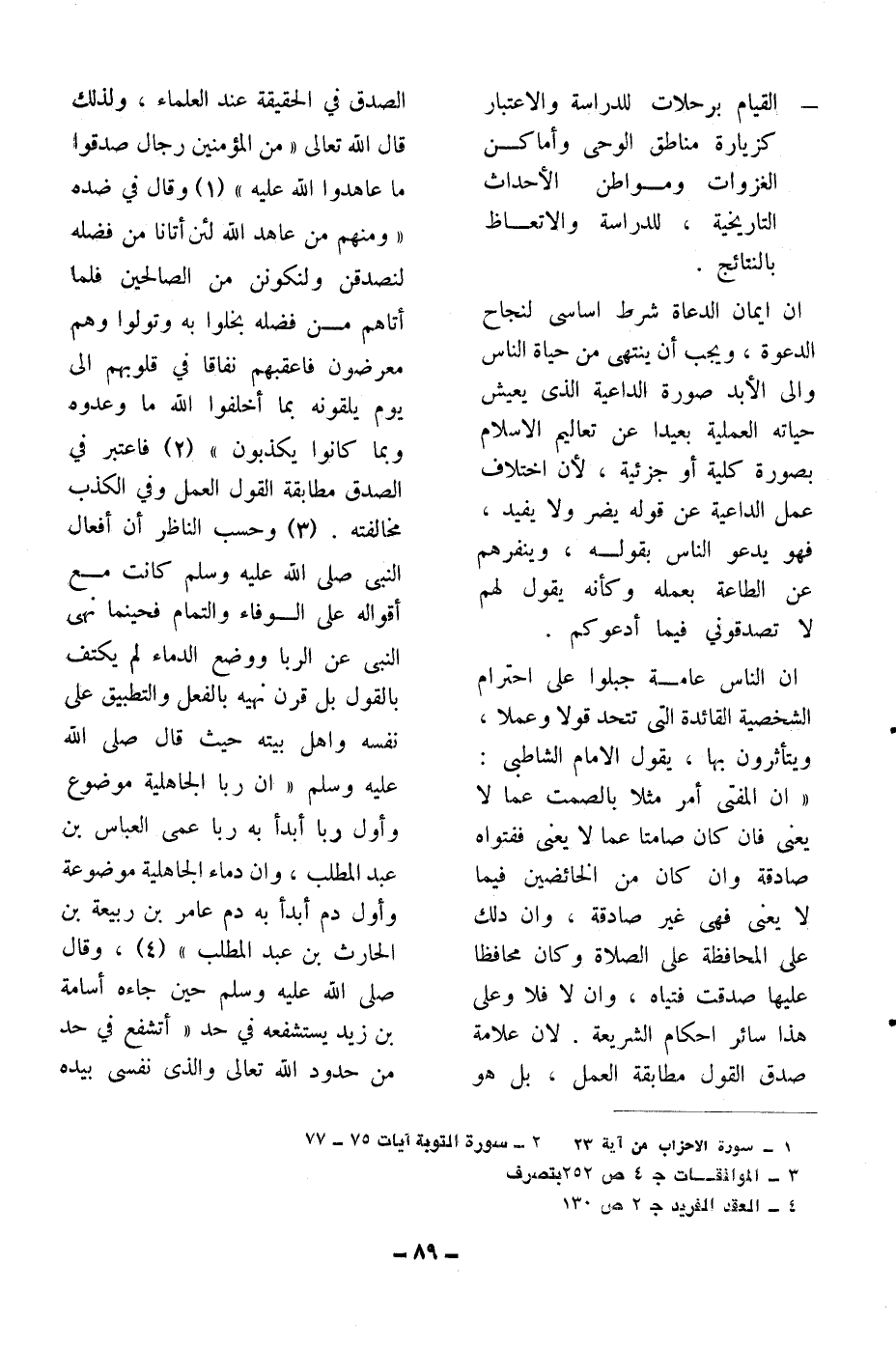 إن إيمان الدعاة شرط أساسي لنجاح الدعوة، ويجب أن ينتهي من حياة الناس وإلى الأبد صورة الداعية الذي يعيش حياته العملية بعيدا عن تعاليم الإسلام بصورة كلية أو جزئية، لأن إختلاف عمل الداعية عن قوله يضر ولا يفيد، فهو يدعو الناس بقوله، وينفرهم عن الطاعة بعمله وكأنه يقول لهم لا تصدقوني فيما أدعوكم.