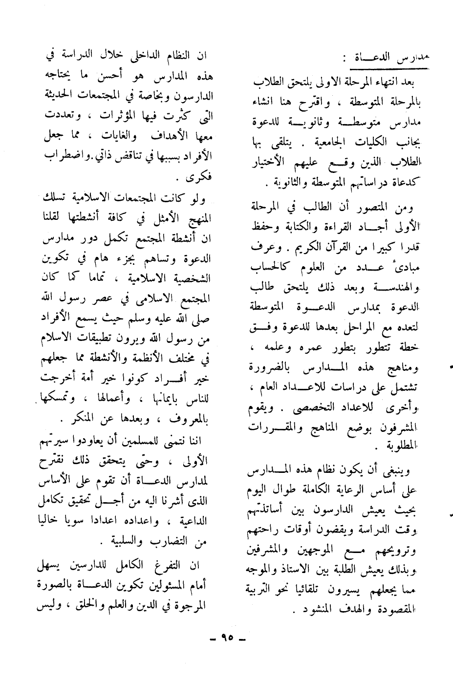 إنا نتمنى للمسلمين أن يعاودوا سيرتهم الأولى، وحتى يتحقق ذلك نقترح لمدارس الدعاة أن تقوم على الأساس الذي أشرنا إليه من أجل تحقيق تكامل الداعية، وإعداده إعداداً سوياً خالياً من التضارب والسلبية.
