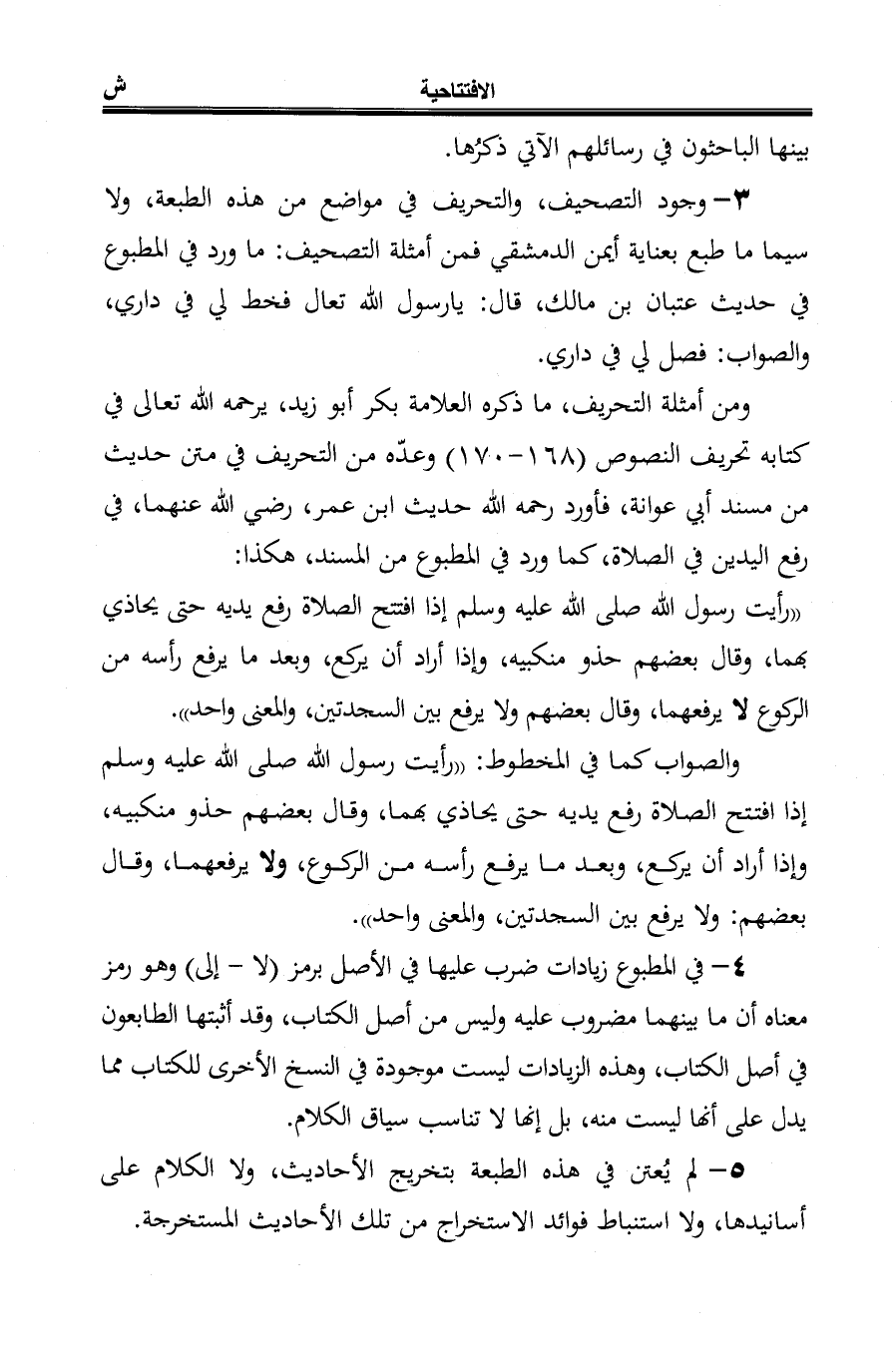 3 - وجود التصحيف، والتحريف في مواضع من هذه الطبعة، ولا سيما ما طبع بعناية أيمن الدمشقي فمن أمثلة التصحيف: ما ورد في المطبوع في حديث عتبان بن مالك، قال: يا رسول الله تعال فخط لي في داري، والصواب: فصل لي في داري.