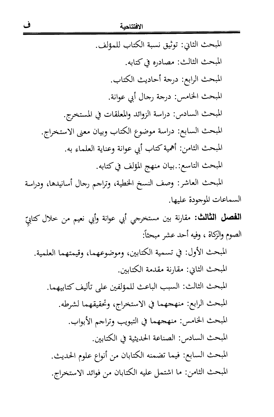 الفصل الثالث: مقارنة بين مستخرجي أبي عوانة وأبي نعيم من خلال كتابيِّ الصوم والزكاة، وفيه أحد عشر مبحثًا: