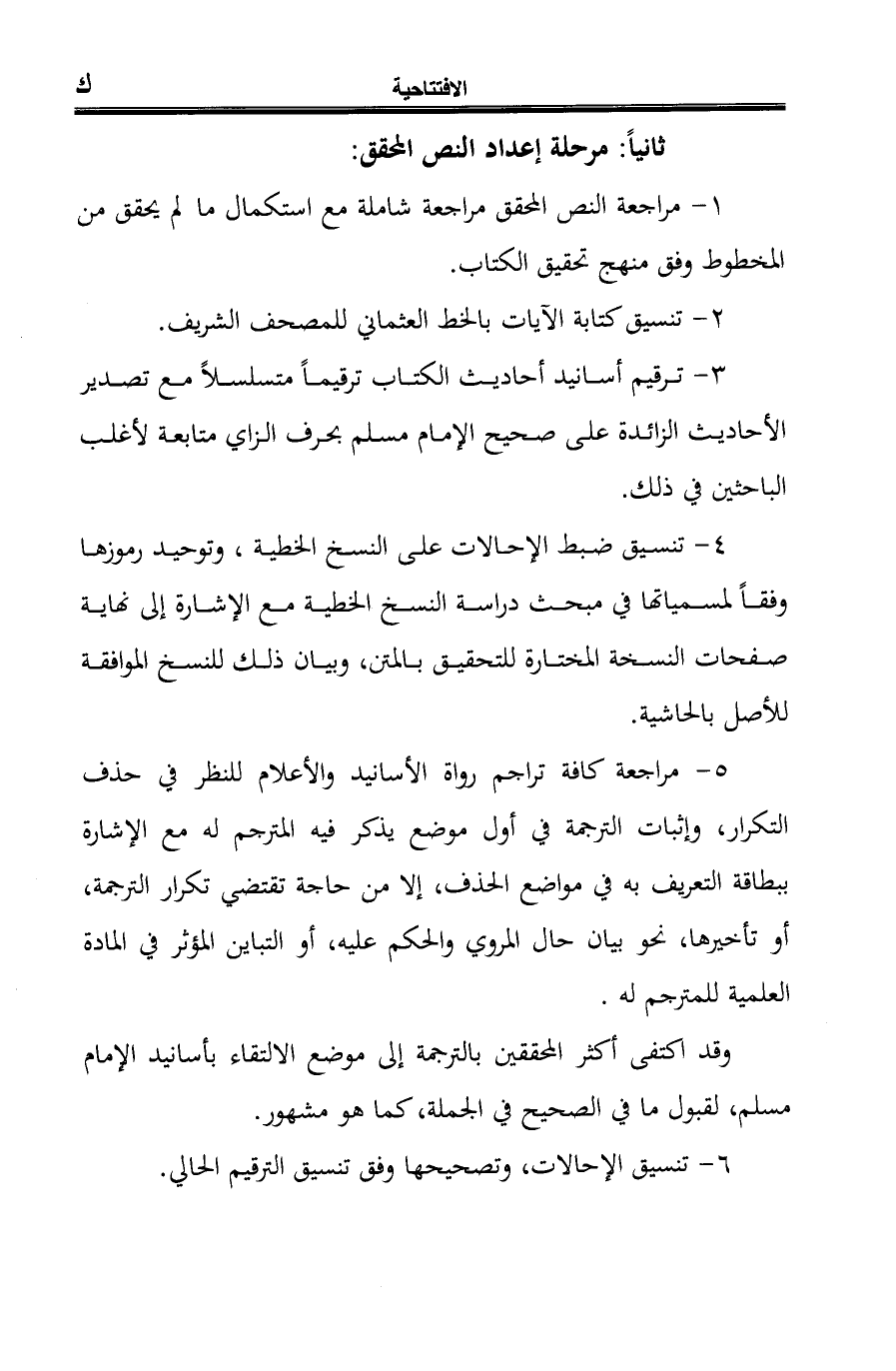 3 - ترقيم أسانيد أحاديث الكتاب ترقيمًا متسلسلًا مع تصدير الأحاديث الزائدة على صحيح الإمام مسلم بحرف الزاي متابعة لأغلب الباحثين في ذلك.