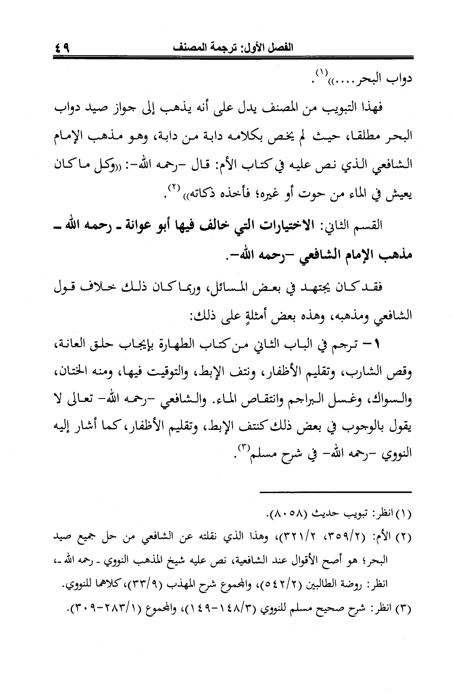 القسم الثاني: الاختيارات التي خالف فيها أبو عوانة -رحمه الله- مذهب الإمام الشافعي -رحمه الله-.