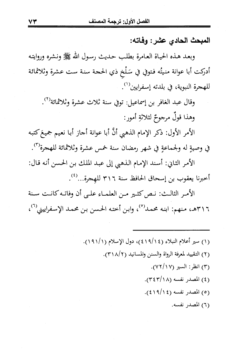 الأمر الثالث: نص كثير من العلماء على أن وفاته كانت سنة 316 هـ، منهم: ابنه محمد (¬5)، وابن أخته الحسن بن محمد الإسفراييني (¬6)،