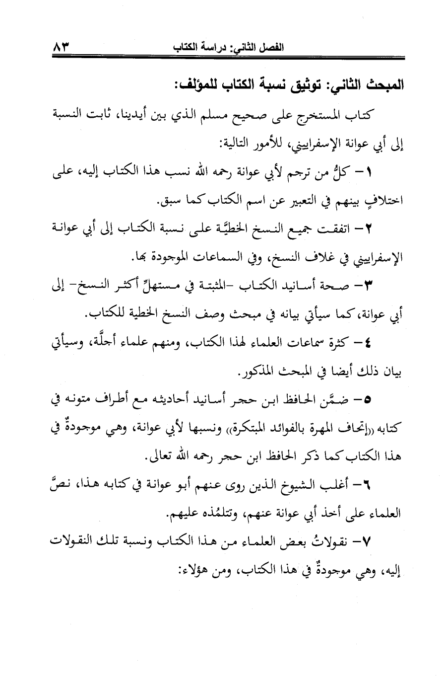 3 - صحة أسانيد الكتاب -المثبتة في مستهلِّ أكثر النسخ- إلى أبي عوانة، كما سيأتي بيانه في مبحث وصف النسخ الخطية للكتاب.