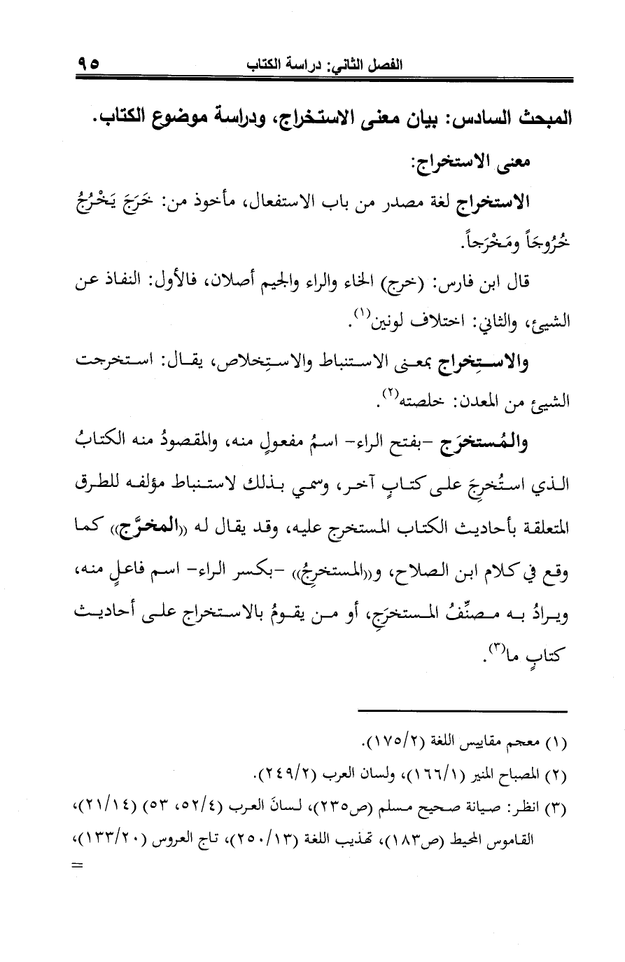 المبحث السادس: بيان معنى الاستخراج، ودراسة موضوع الكتاب.