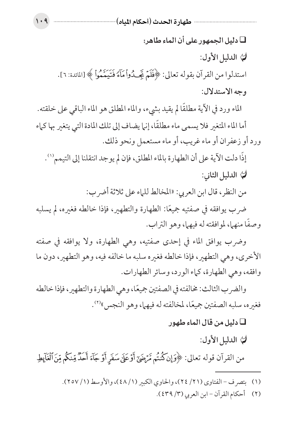 (¬١) بتصرف - الفتاوى (٢١/ ٢٤)، والحاوي الكبير (١/ ٤٨)، والأوسط (١/ ٢٥٧).