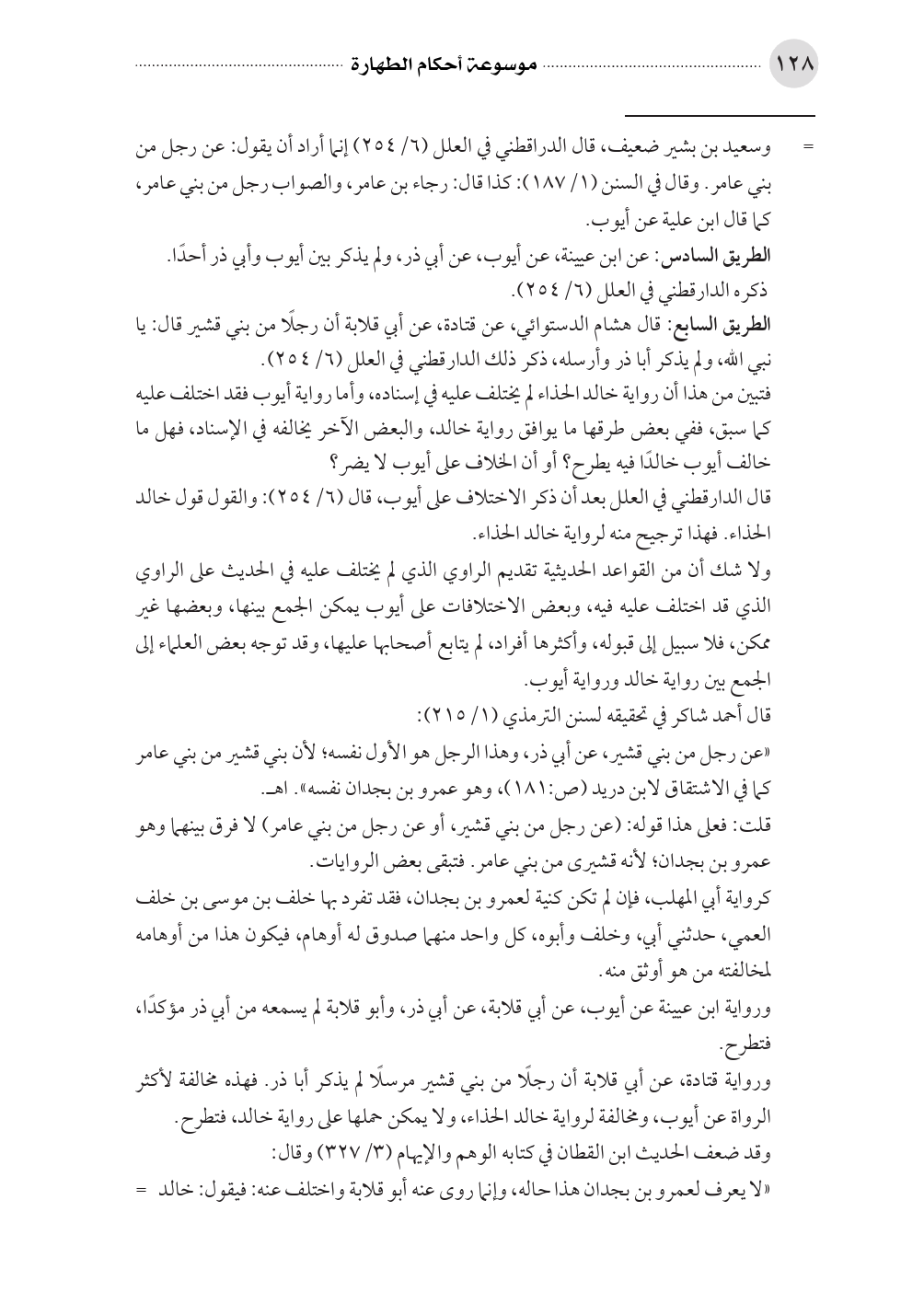 قال الدارقطني في العلل بعد أن ذكر الاختلاف على أيوب، قال (٦/ ٢٥٤): والقول قول خالد الحذاء. فهذا ترجيح منه لرواية خالد الحذاء.