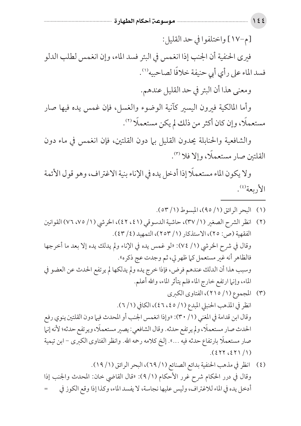 (¬٤) انظر في مذهب الحنفية بدائع الصنائع (١/ ٦٩)، البحر الرائق (١/ ١٩).