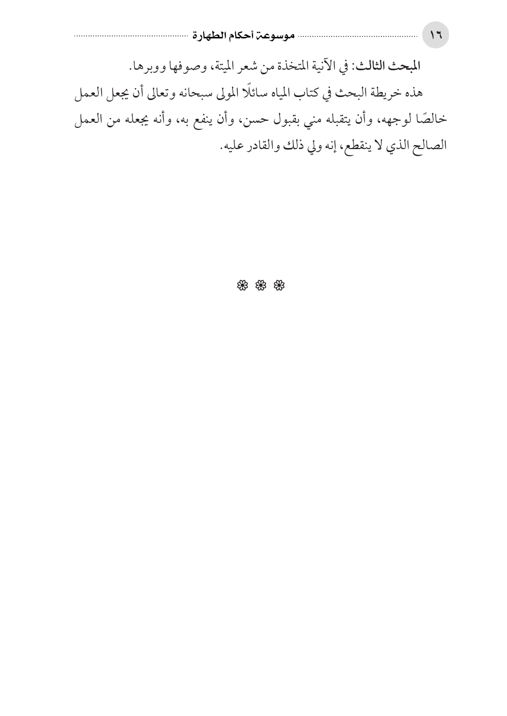 المبحث الثالث: في الآنية المتخذة من شعر الميتة، وصوفها ووبرها.