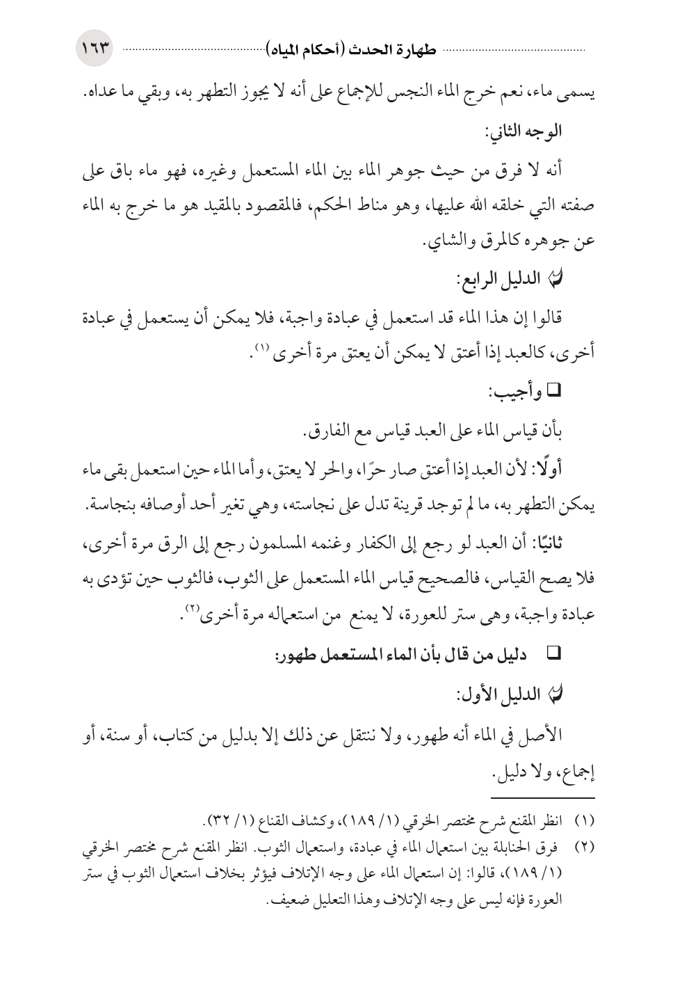 (¬١) انظر المقنع شرح مختصر الخرقي (١/ ١٨٩)، وكشاف القناع (١/ ٣٢).