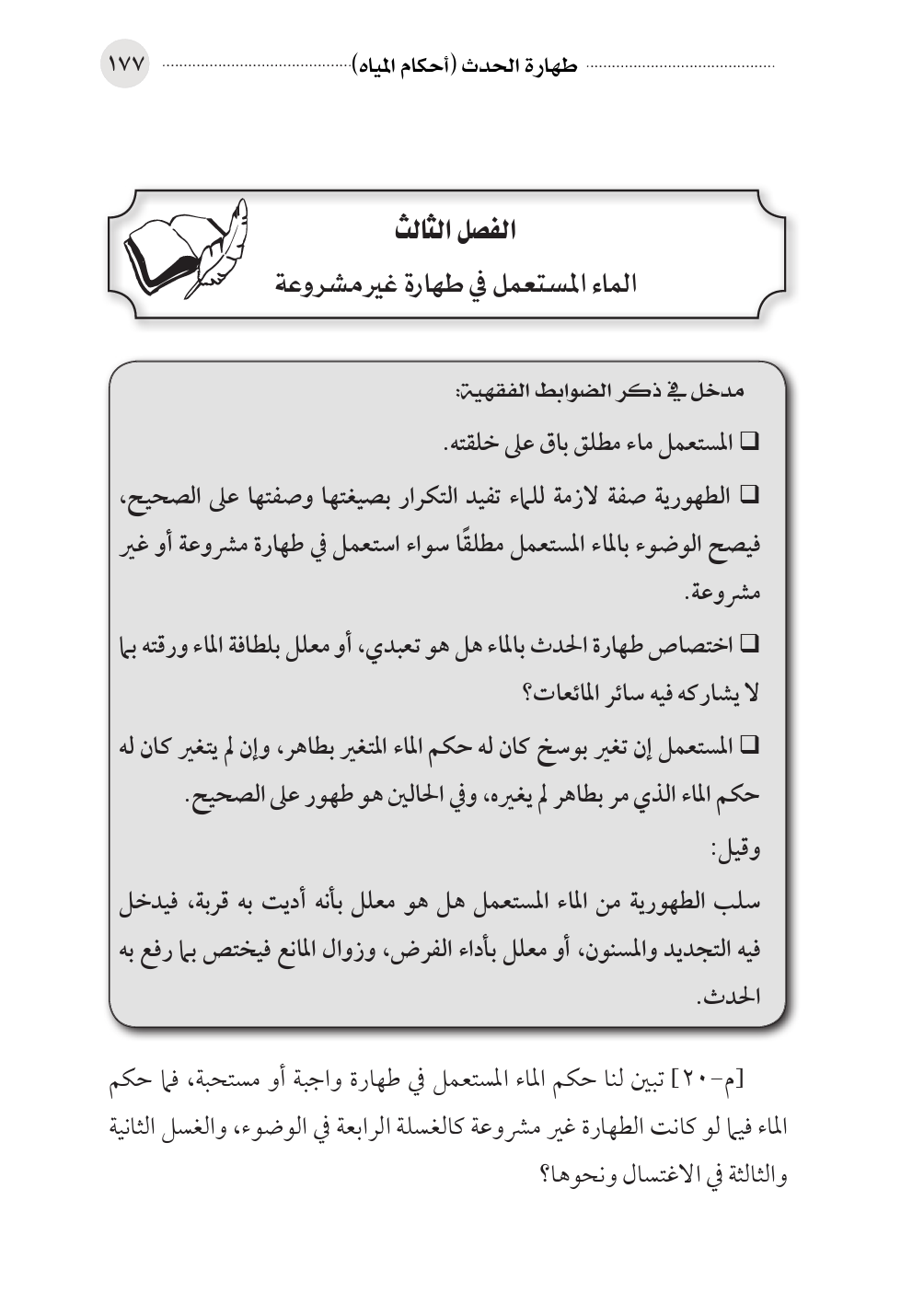 الفصل الثالث الماء المستعمل في طهارة غير مشروعة