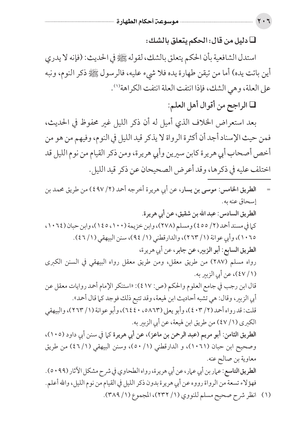 (¬١) انظر شرح صحيح مسلم للنووي (١/ ٢٣٢)، المجموع (١/ ٣٨٩).