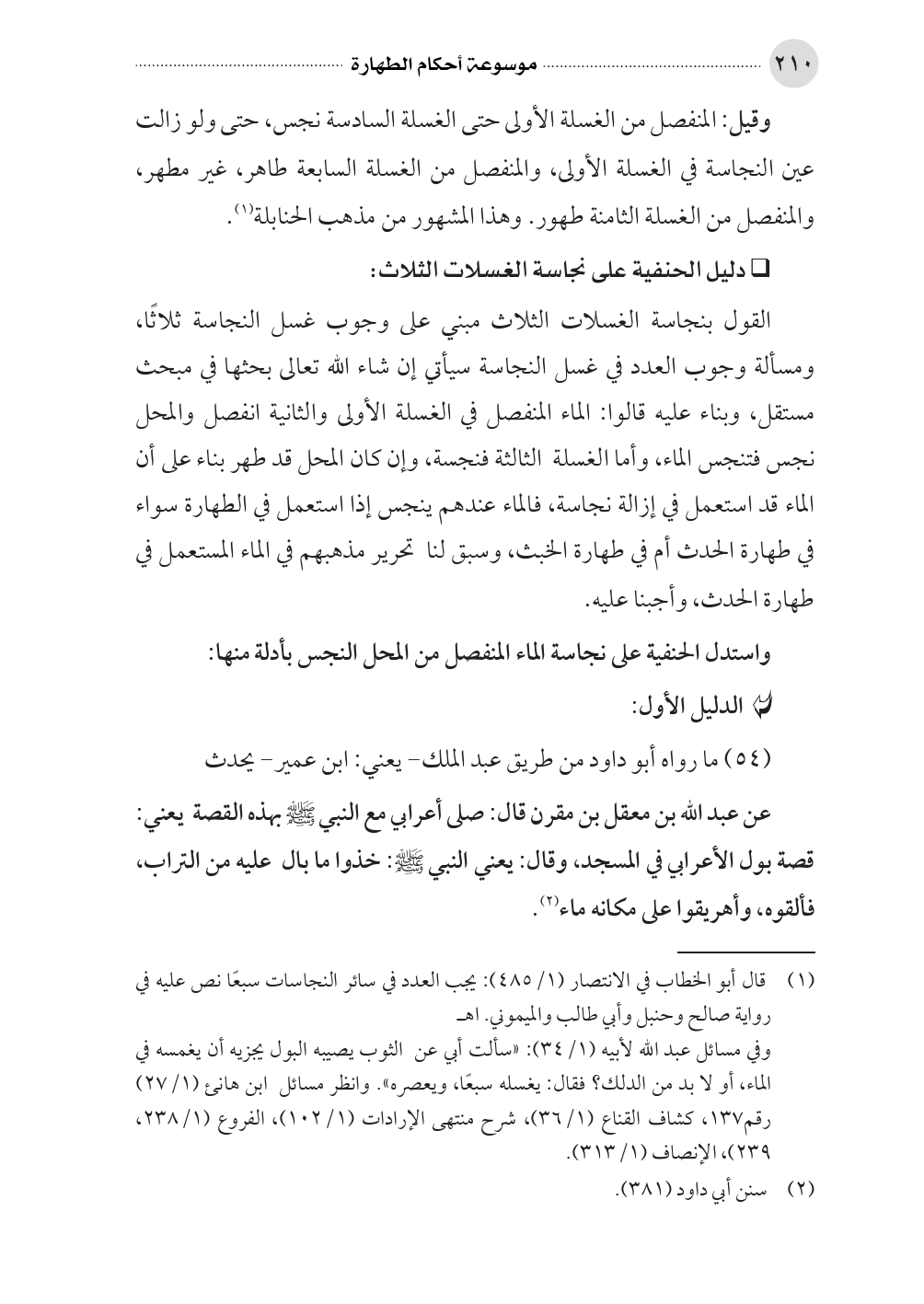 (¬١) قال أبو الخطاب في الانتصار (١/ ٤٨٥): يجب العدد في سائر النجاسات سبعًا نص عليه في رواية صالح وحنبل وأبي طالب والميموني. اهـ