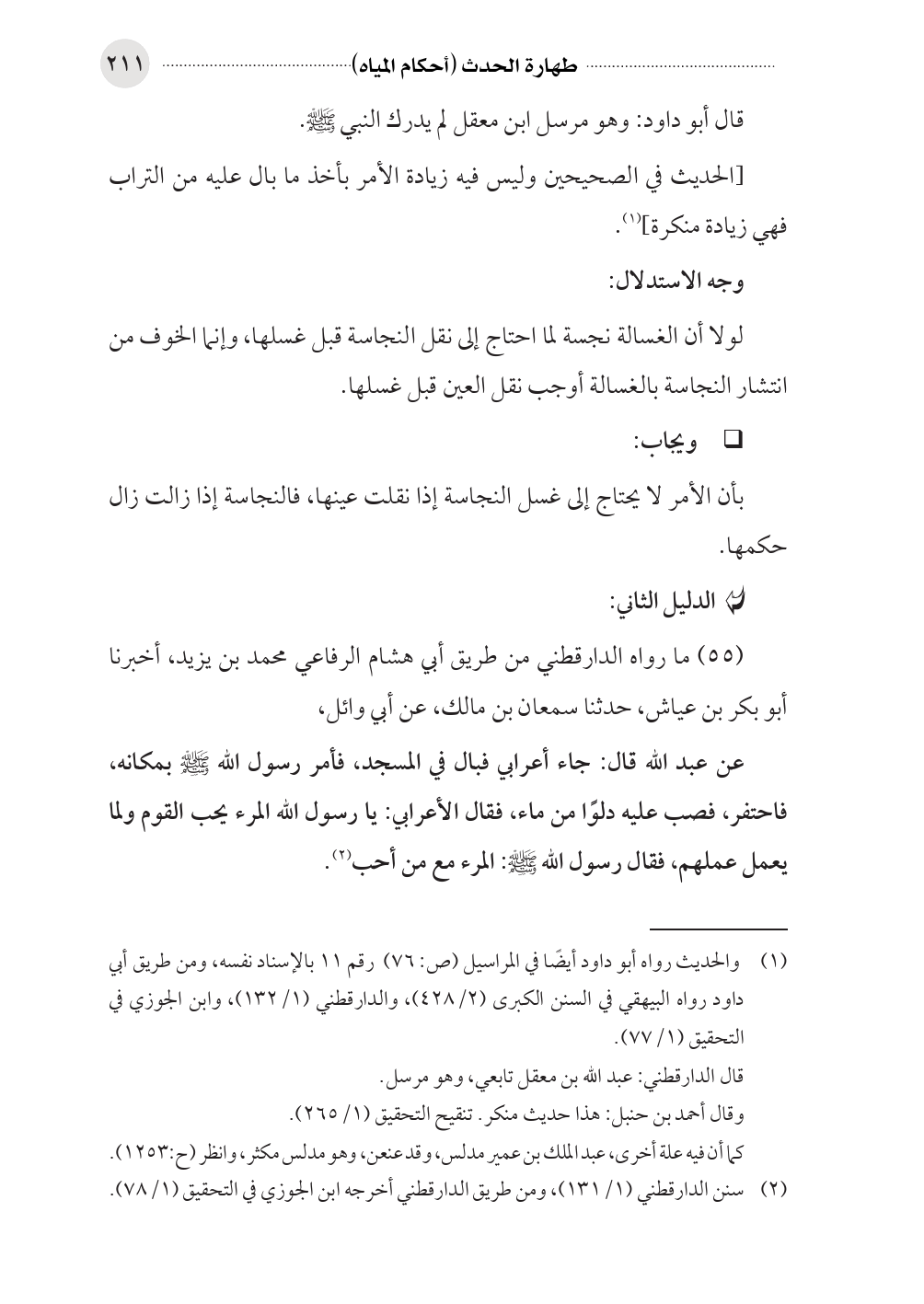 (¬١) والحديث رواه أبو داود أيضًا في المراسيل (ص: ٧٦) رقم ١١ بالإسناد نفسه، ومن طريق أبي داود رواه البيهقي في السنن الكبرى (٢/ ٤٢٨)، والدارقطني (١/ ١٣٢)، وابن الجوزي في التحقيق (١/ ٧٧).