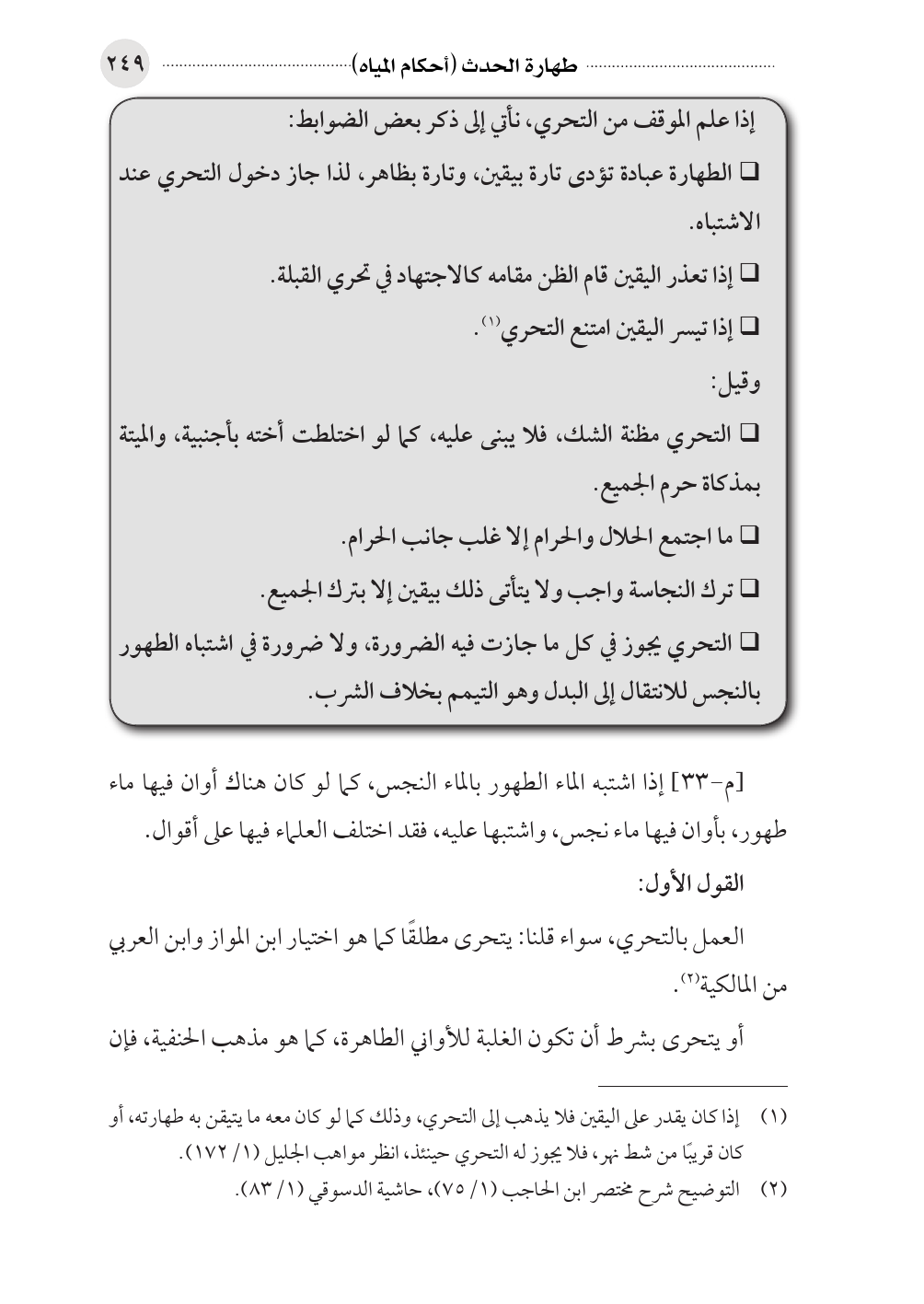 (¬٢) التوضيح شرح مختصر ابن الحاجب (١/ ٧٥)، حاشية الدسوقي (١/ ٨٣).