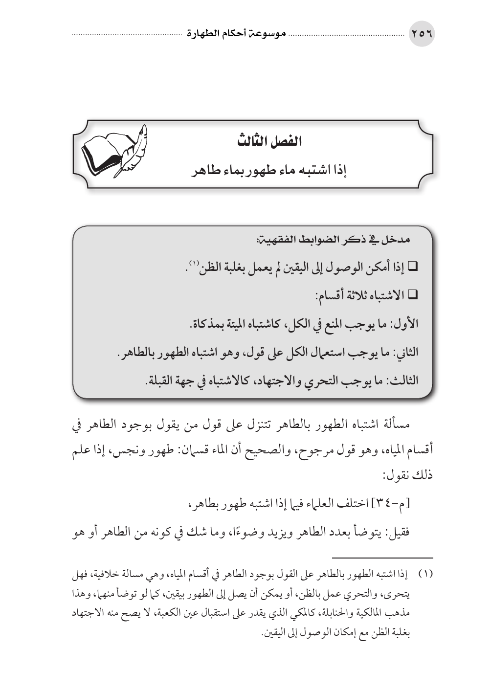 الفصل الثالث إذا اشتبه ماء طهور بماء طاهر