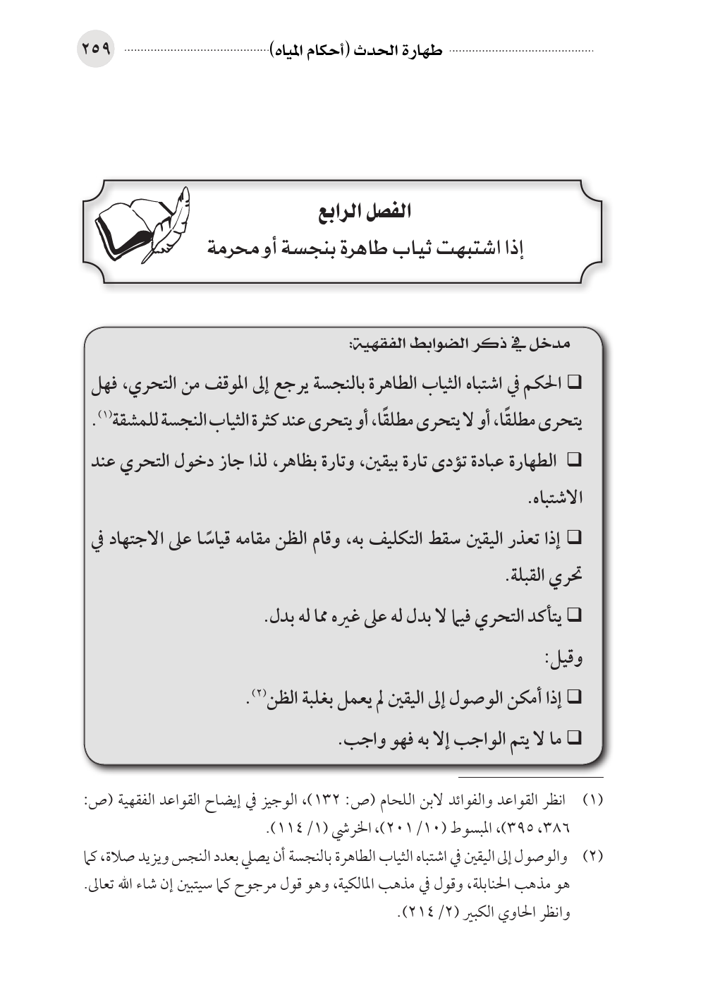 الفصل الرابع إذا اشتبهت ثياب طاهرة بنجسة أو محرمة