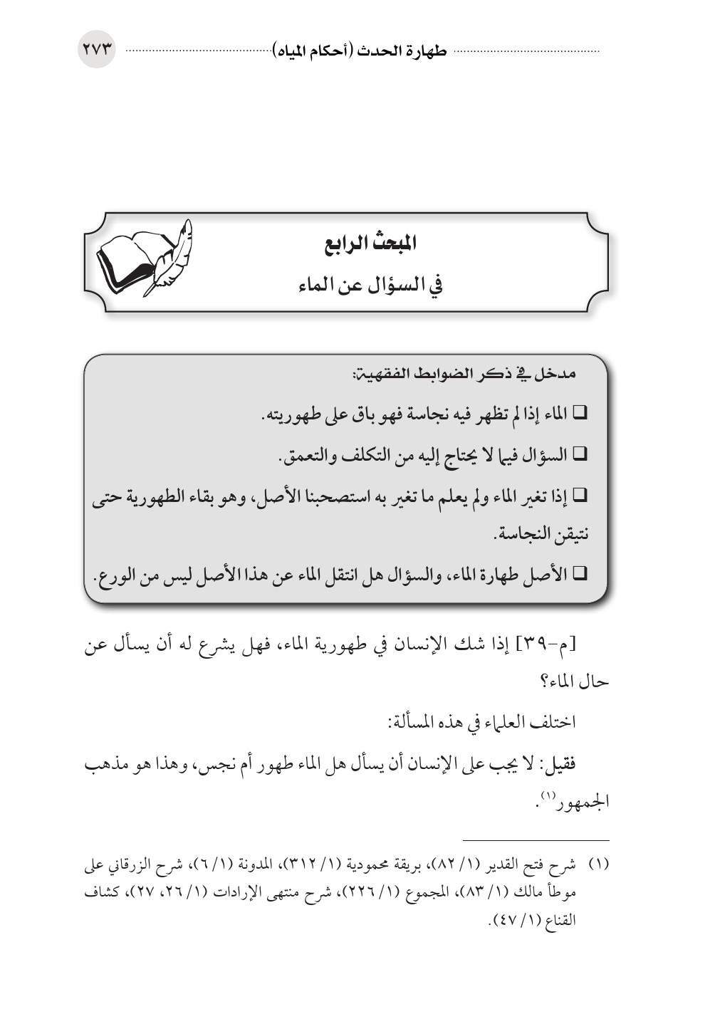 المبحث الرابع في السؤال عن الماء