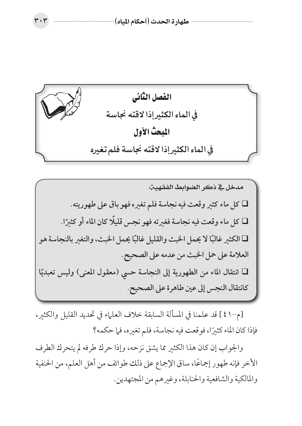المبحث الأول في الماء الكثير إذا لاقته نجاسة فلم تغيره