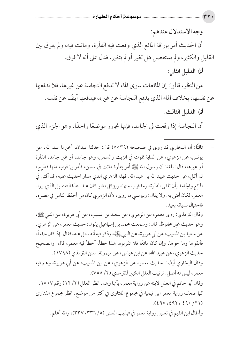 = ثالثًا: أن البخاري قد روى في صحيحه (٥٥٣٩) قال: حدثنا عبدان، أخبرنا عبد الله، عن يونس، عن الزهري، عن الدابة تموت في الزيت والسمن، وهو جامد، أو غير جامد، الفأرة أو غيرها، قال: بلغنا أن رسول الله صلى الله عليه وسلم أمر بفأرة ماتت في سمن، فأمر بما قرب منها فطرح، ثم أكل، عن حديث عبيد الله بن عبد الله. فهذا الزهري الذي مدار الحديث عليه، قد أفتى في المائع والجامد بأن تلقى الفأرة، وما قرب منها، ويؤكل، فلو كان عنده هذا التفصيل الذي رواه معمر، لكان أفتى به. ولا يقال: ربما نسي ما روى، لأن الزهري كان من أحفظ الناس في عصره، فاحتمال نسيانه بعيد.
