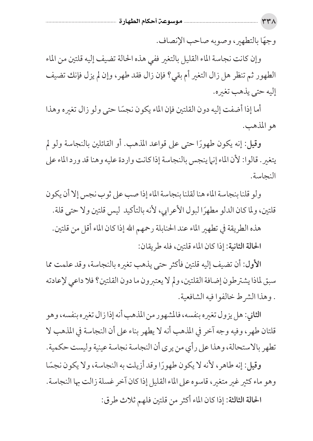 الحالة الثالثة: إذا كان الماء أكثر من قلتين فلهم ثلاث طرق: