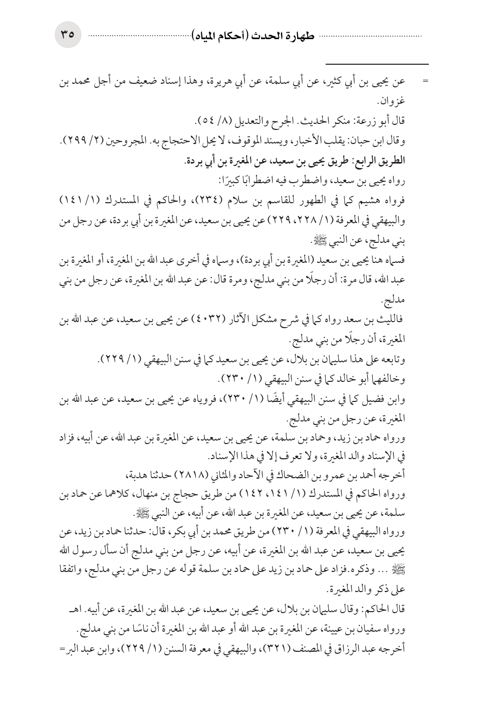فرواه هشيم كما في الطهور للقاسم بن سلام (٢٣٤)، والحاكم في المستدرك (١/ ١٤١) والبيهقي في المعرفة (١/ ٢٢٨، ٢٢٩) عن يحيى بن سعيد، عن المغيرة بن أبي بردة، عن رجل من بني مدلج، عن النبي صلى الله عليه وسلم.