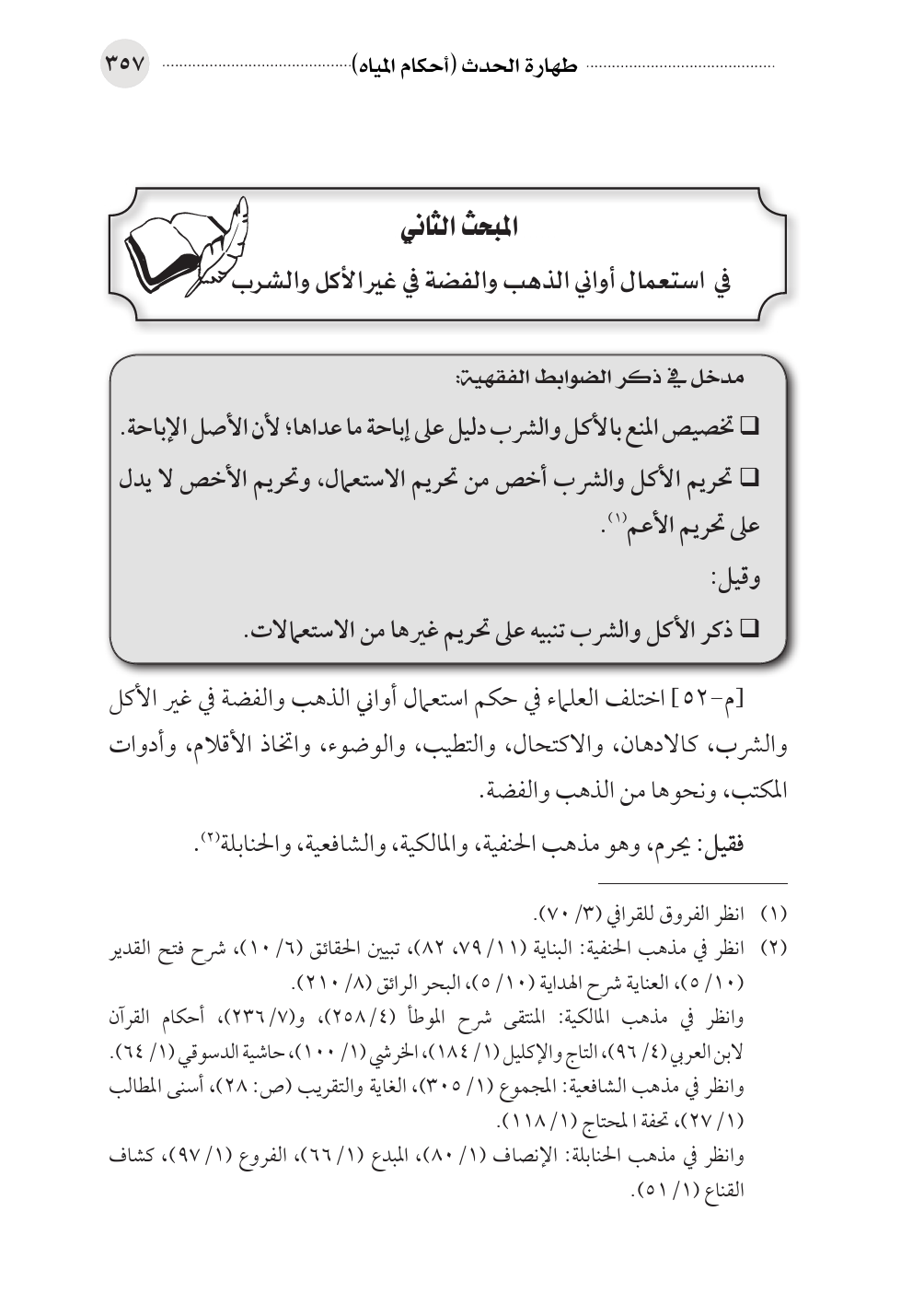 المبحث الثاني في استعمال أواني الذهب والفضة في غير الأكل والشرب