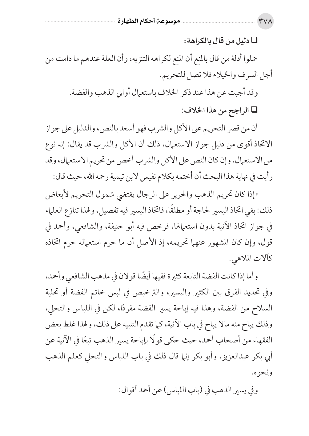 وقد أجبت عن هذا عند ذكر الخلاف باستعمال أواني الذهب والفضة.