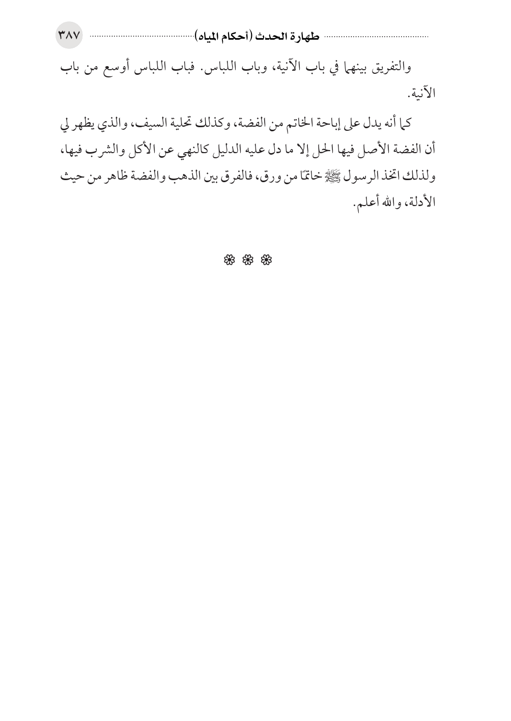 كما أنه يدل على إباحة الخاتم من الفضة، وكذلك تحلية السيف، والذي يظهر لي أن الفضة الأصل فيها الحل إلا ما دل عليه الدليل كالنهي عن الأكل والشرب فيها، ولذلك اتخذ الرسول صلى الله عليه وسلم خاتمًا من ورق، فالفرق بين الذهب والفضة ظاهر من حيث الأدلة، والله أعلم.