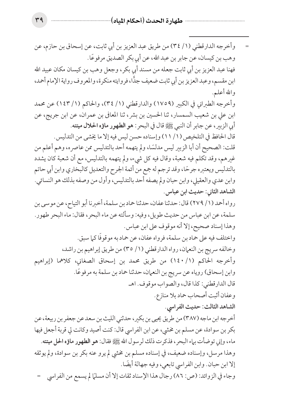 أخرجه ابن ماجه (٣٨٧) من طريق يحيى بن بكير، حدثني الليث بن سعد عن جعفر بن ربيعة، عن بكر بن سوادة، عن مسلم بن مخشي، عن ابن الفراسي قال: كنت أصيد وكانت لي قربة أجعل فيها ماء، وإني توضأت بماء البحر، فذكرت ذلك لرسول الله صلى الله عليه وسلم فقال: هو الطهور ماؤه الحل ميتته.