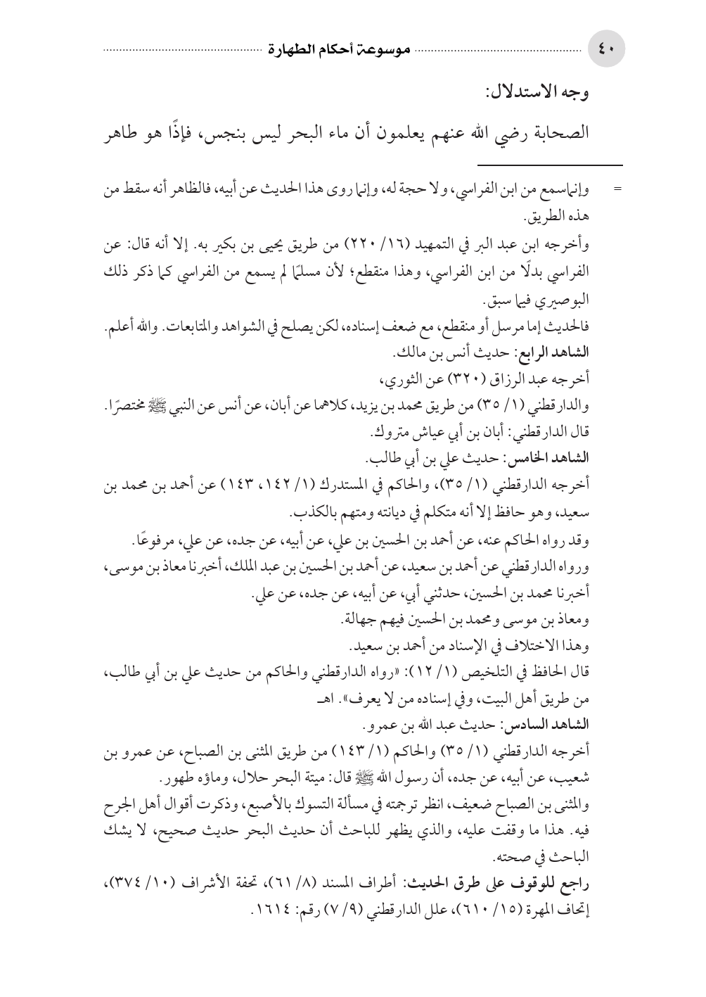 الصحابة رضي الله عنهم يعلمون أن ماء البحر ليس بنجس، فإذًا هو طاهر