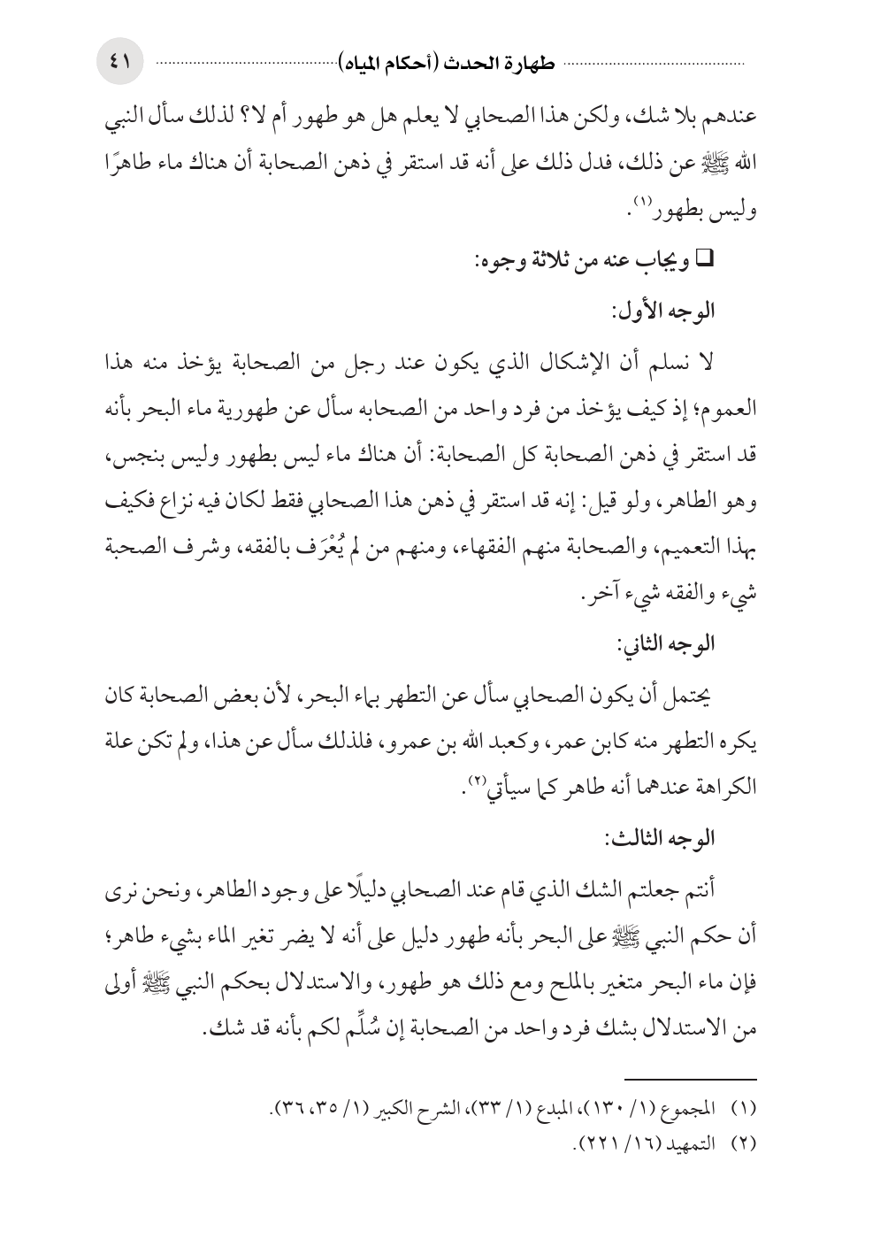 (¬١) المجموع (١/ ١٣٠)، المبدع (١/ ٣٣)، الشرح الكبير (١/ ٣٥، ٣٦).