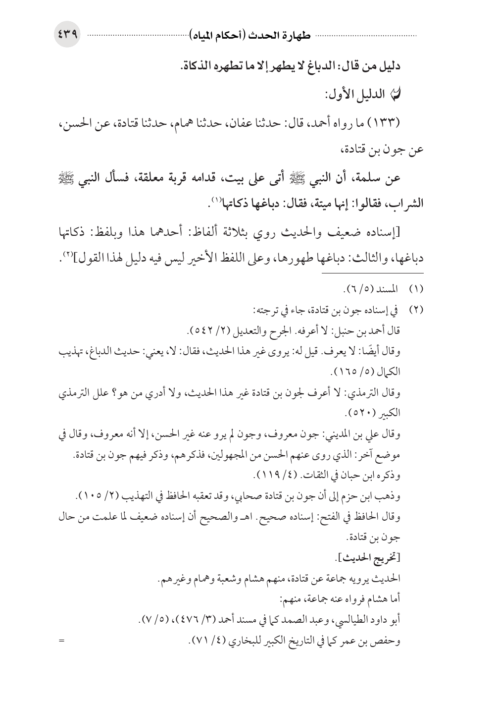 (١٣٣) ما رواه أحمد، قال: حدثنا عفان، حدثنا همام، حدثنا قتادة، عن الحسن، عن جون بن قتادة،