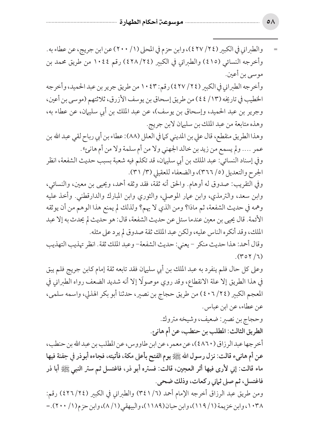 ومن طريق عبد الرزاق أخرجه الإمام أحمد (٦/ ٣٤١) والطبراني في الكبير (٢٤/ ٤٢٦) رقم: ١٠٣٨، وابن خزيمة (١/ ١١٩)، وابن حبان (١١٨٩)، والبيهقي (١/ ٨)، وابن حزم (١/ ٢٠٠). =