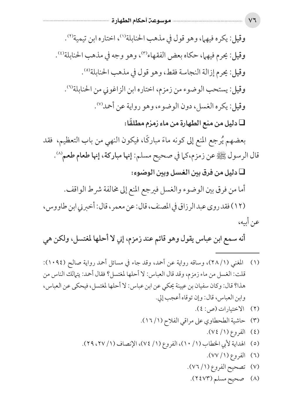 (¬١) المغني (١/ ٢٨)، وساقه رواية عن أحمد، وقد جاء في مسائل أحمد رواية صالح (١٠٩٤): قلت: الغسل من ماء زمزم، وقد قال العباس: لا أحلها لمغتسل؟ فقال أحمد: يتمالك الناس من هذا؟ قال: وكان سفيان بن عيينة يحكي عن ابن عباس: لا أحلها لمغتسل، فيحكى عن العباس،