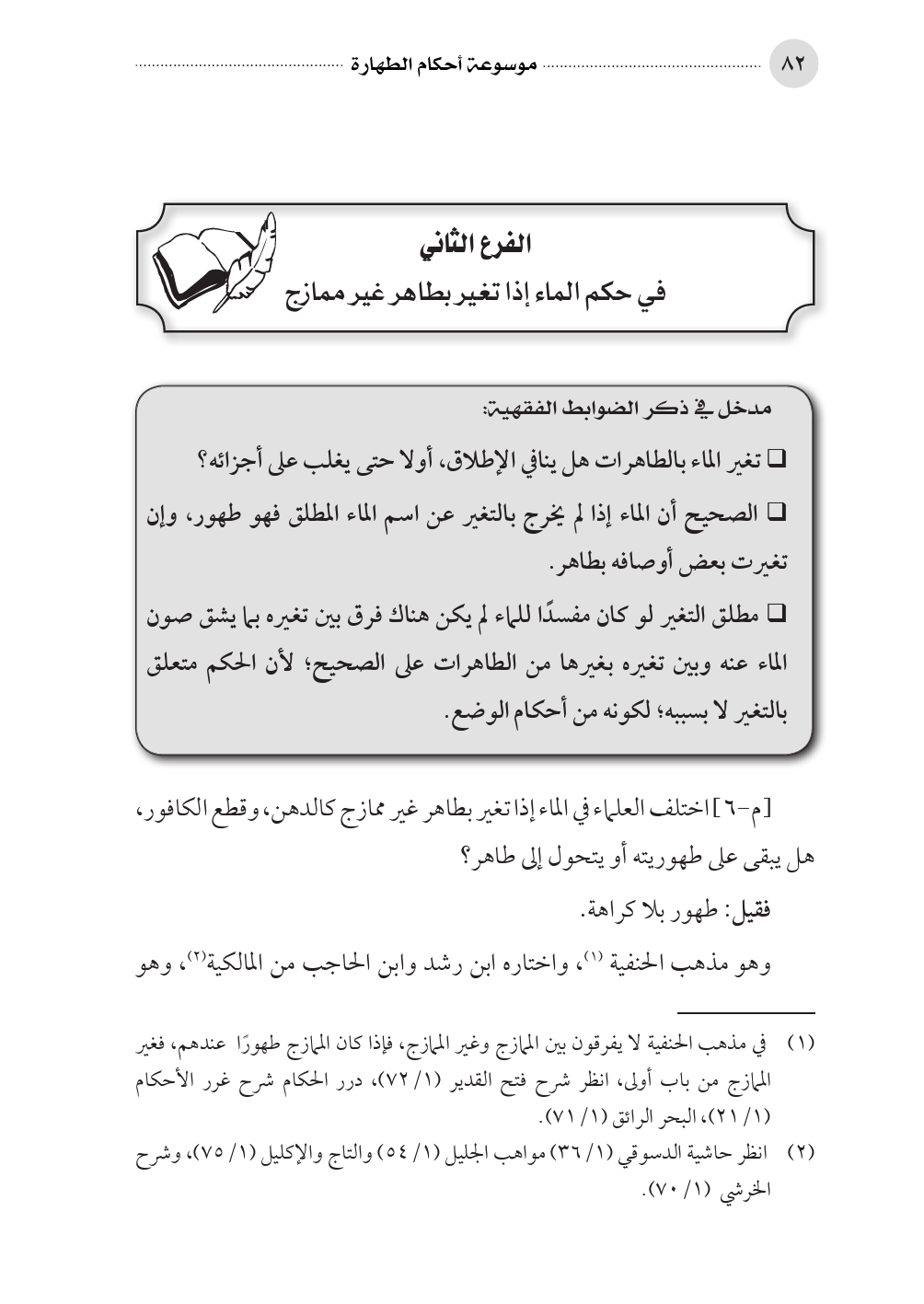 (¬٢) انظر حاشية الدسوقي (١/ ٣٦) مواهب الجليل (١/ ٥٤) والتاج والإكليل (١/ ٧٥)، وشرح الخرشي (١/ ٧٠).