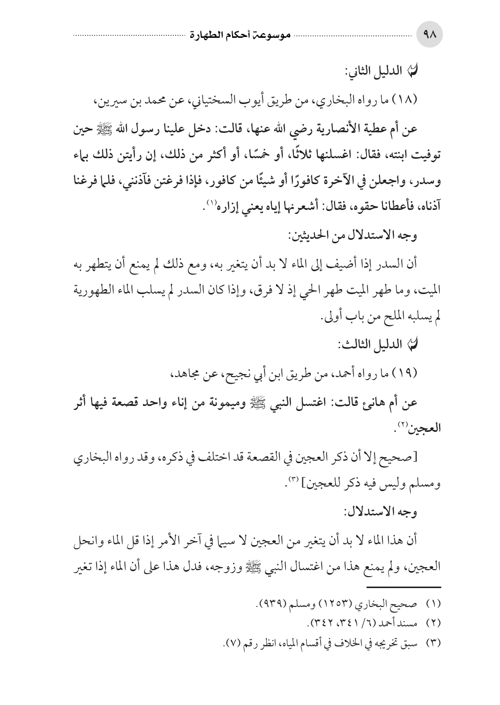(¬٣) سبق تخريجه في الخلاف في أقسام المياه، انظر رقم (٧).