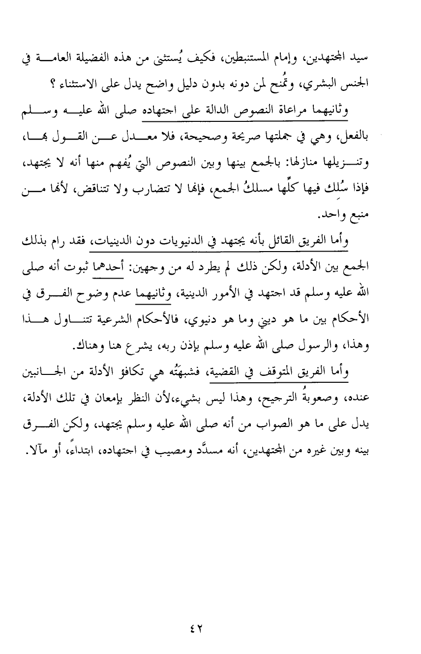 سيد المجتهدين، وإمام المستنبطين، فكيف يُستثنى من هذه الفضيلة العامة في الجنس البشري، وتمُنح لمن دونه بدون دليل واضح يدل على الاستثناء؟