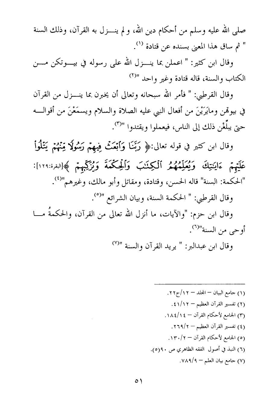 وقال القرطبي: " الحكمة السنة، وبيان الشرائع " (5) .