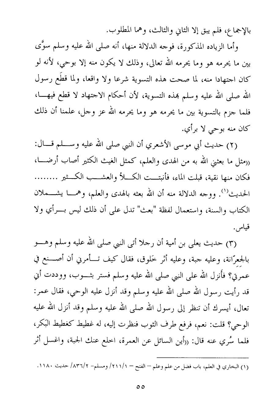وأما الزياده المذكورة، فوجه الدلالة منها، أنه صلى الله عليه وسلم سوَّى بين ما يحرمه هو وما يحرمه الله تعالى، وذلك لا يكون منه إلا بوحي، لأنه لو كان اجتهادا منه، لما صحت هذه التسوية شرعا ولا واقعا، ولما قطَع رسول الله صلى الله عليه وسلم بهذه التسوية، لأن أحكام الاجتهاد لا قطع فيها، فلما جزم بالتسوية بين ما يحرمه هو وما يحرمه الله عز وجل، علمنا أن ذلك كان منه بوحي لا برأي.