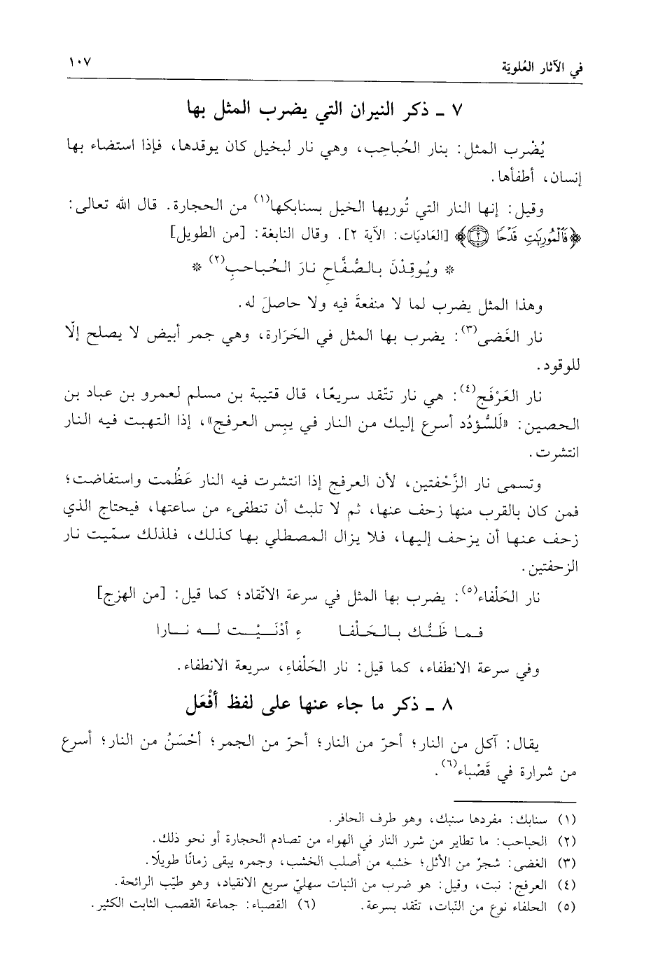 يقال : آكل من النار ؛ أحر من الجمرة ؛ أحسن من النار ؛ أسرع من شرارة في قصباء .