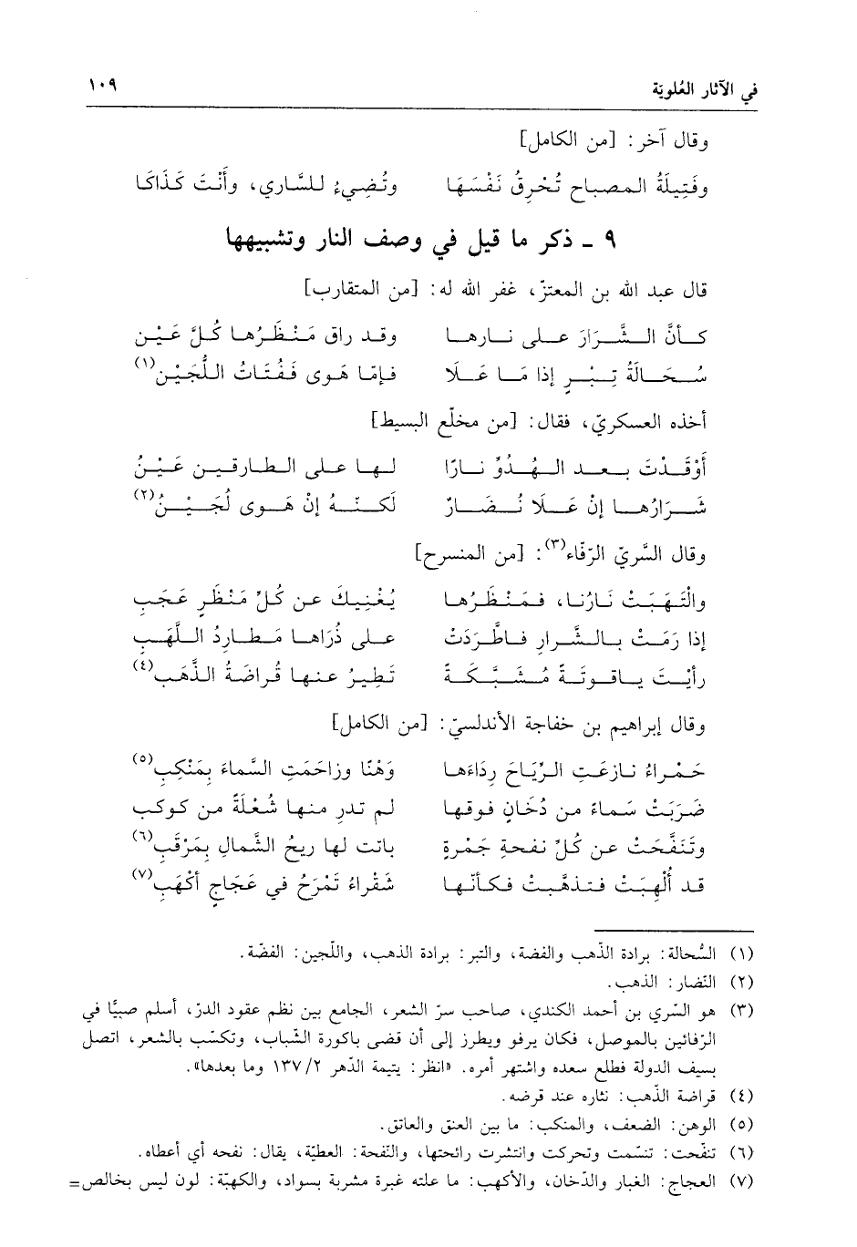 9 - ذكر ما قيل في وصف النار وتشبيهها