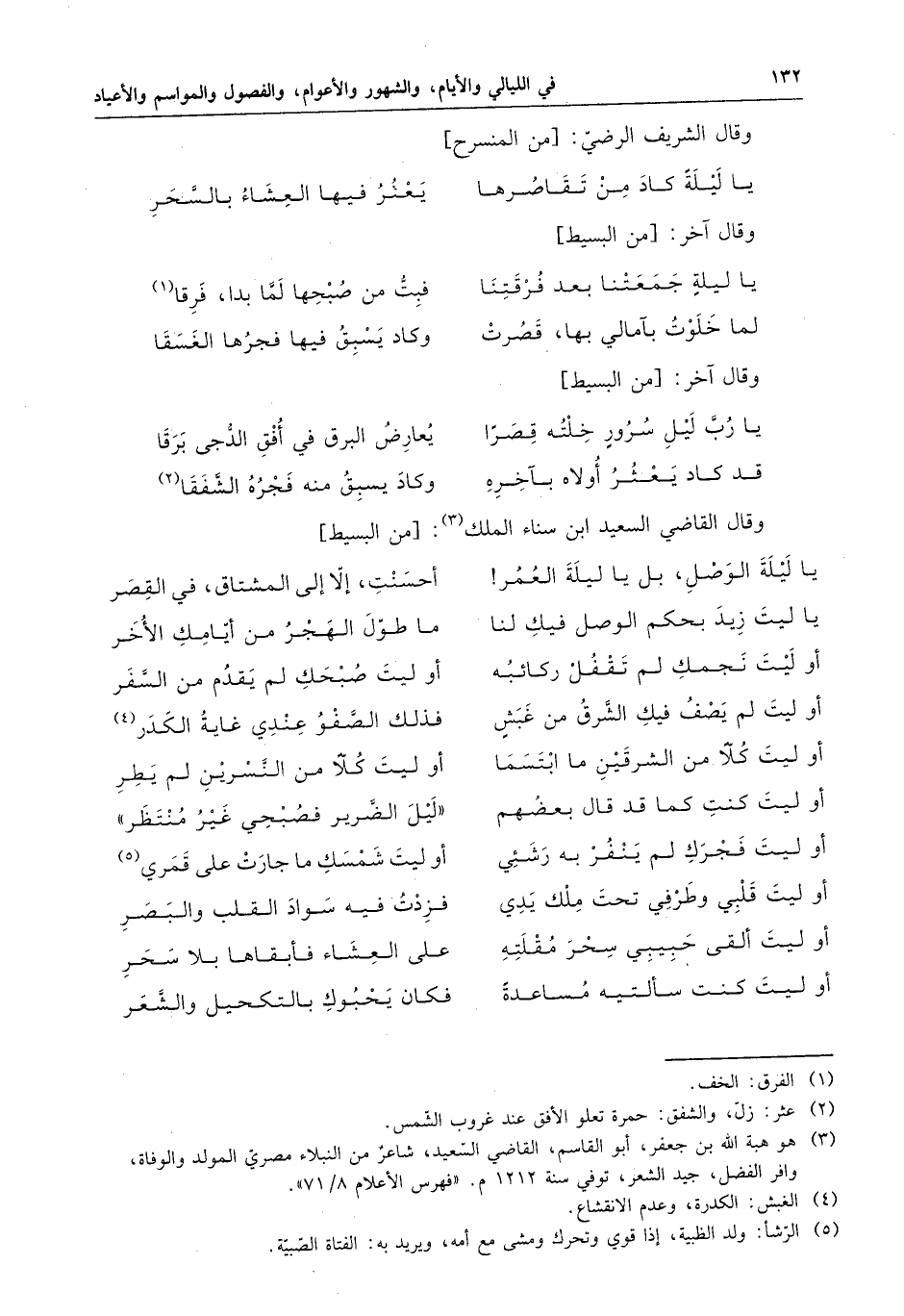 يا ليلة كاد من تقاصرها . . . يعثر فيها العشاء بالسحر .