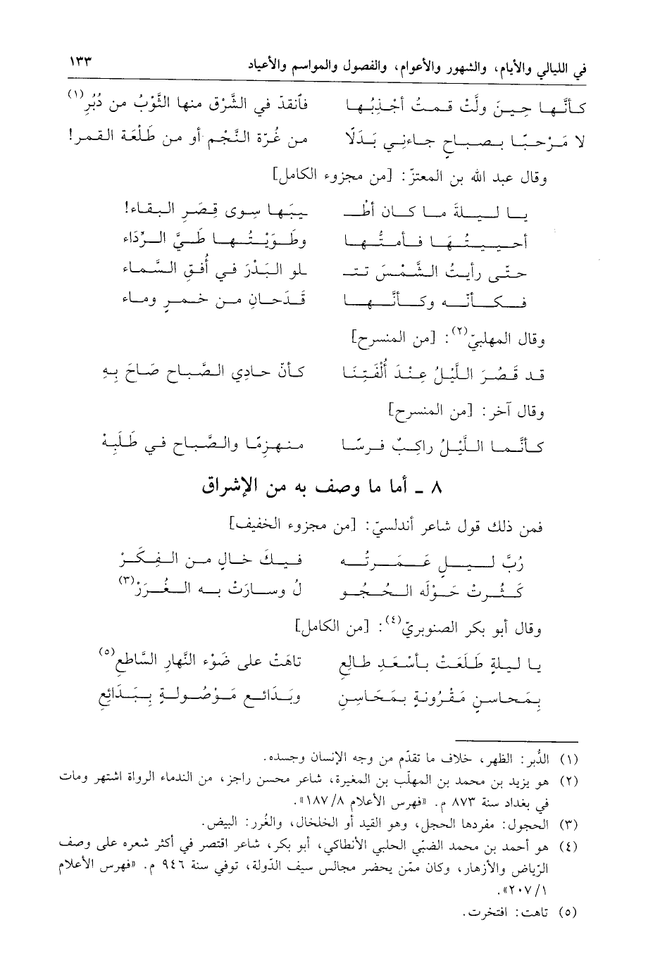 كأنما الليل راكب فرساً . . . منهزماً والصباح في طلبه .